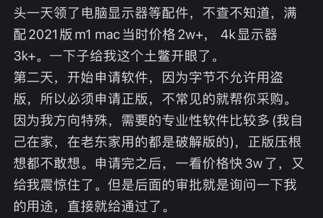 有人羡慕,有人酸,有人玩梗,还有不少人并不买单,“别开心的太早,不过是公司给正式员工M1 Mac 配了个人而已”。