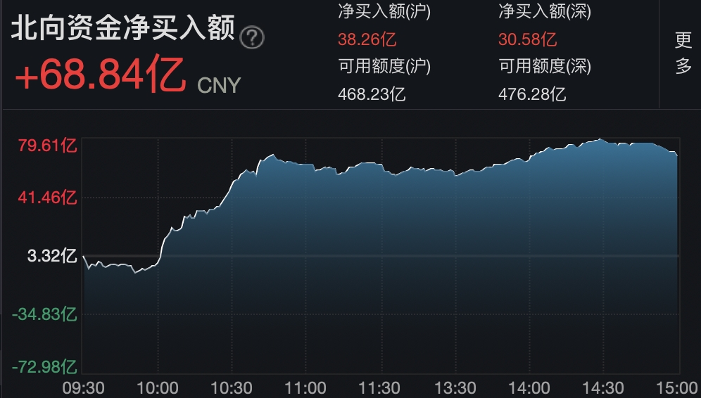 三大指数收盘集体上涨,沪指涨1.4%,深成指涨1.41%,创业板指涨0.85%;两市超4000股飘红,北向资金净买入68.84亿元。