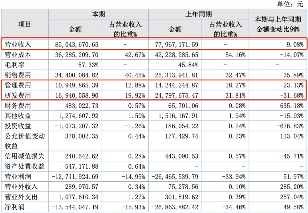 具体而言,通过业务收入及毛利率减少的利润亏损约1302万元,同期减少管理、研发费用约1115.14万元,两方面合计减亏2417.14万元。
