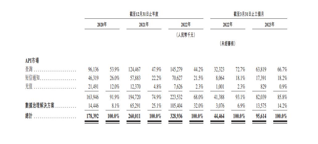 致力于通过 API打通数据孤岛,为用户提供跨越多个用例和使用场景的在线 API 服务,公司专有 API 市场 APIHub 可匹配供需并促进数据流通。该等服务已广泛应用于互联网服务、软件信息服务、通信等各行业。此外,公司通过数据治理解决方案帮助企业及政府机构进行数字化转型。