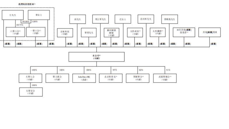 IPO前,左磊直接持股为43.59%,通过六聚六合控制1.84%股权,通过一聚六合控制7.75%股权,华洹女士直接持股为0.15%,一起组成聚合数据的控股股东,华洹女士为左磊的配偶。