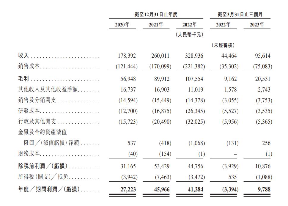2020年、2021年、2022年以及截至2023年3月31日止三个月,天聚地合营收分别为1.78 亿元、2.60 亿元、3.29 亿元、9561.4 万元,同期,利润为 2722.3 万元、4596.66 万元、4128.4 万元、978.8 万元。