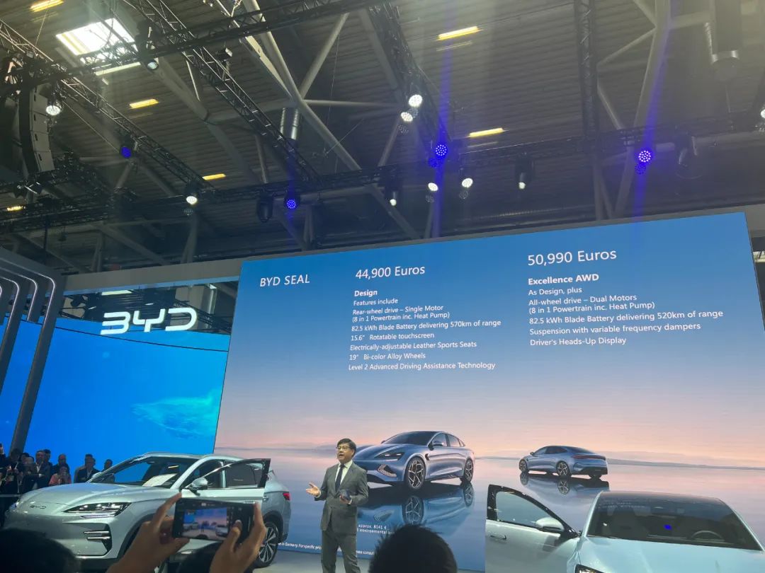 值得一提的是,比亚迪SEAL在车展开幕日也公布了其在德国市场的售价,其中单电机后驱版本售价为44900欧元(约合人民币35.2万元);双电机四驱版本车型售价为50990欧元(约合人民币40万元)。