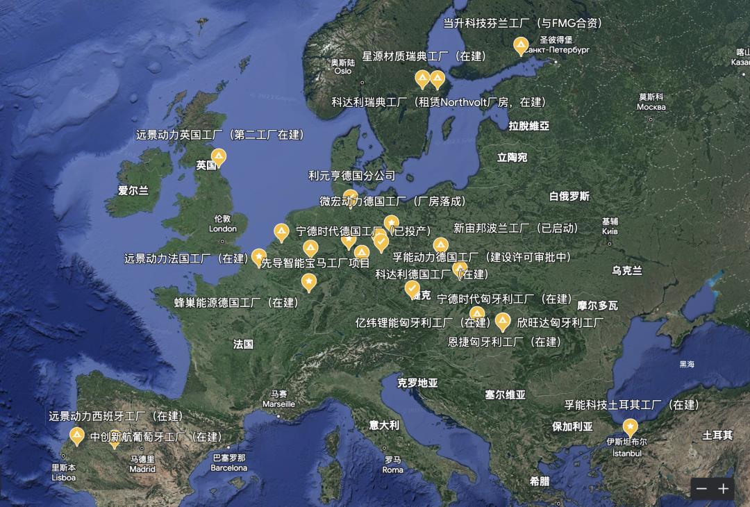 截至今年6月15日,在欧盟公布的50个锂电池工厂项目中,中国企业占比过半[2]。龙头宁德时代更是计划在匈牙利建设100GWh的电池工厂。伴随电池厂出海的,还有大量设备、碳酸锂精炼厂、主材企业。