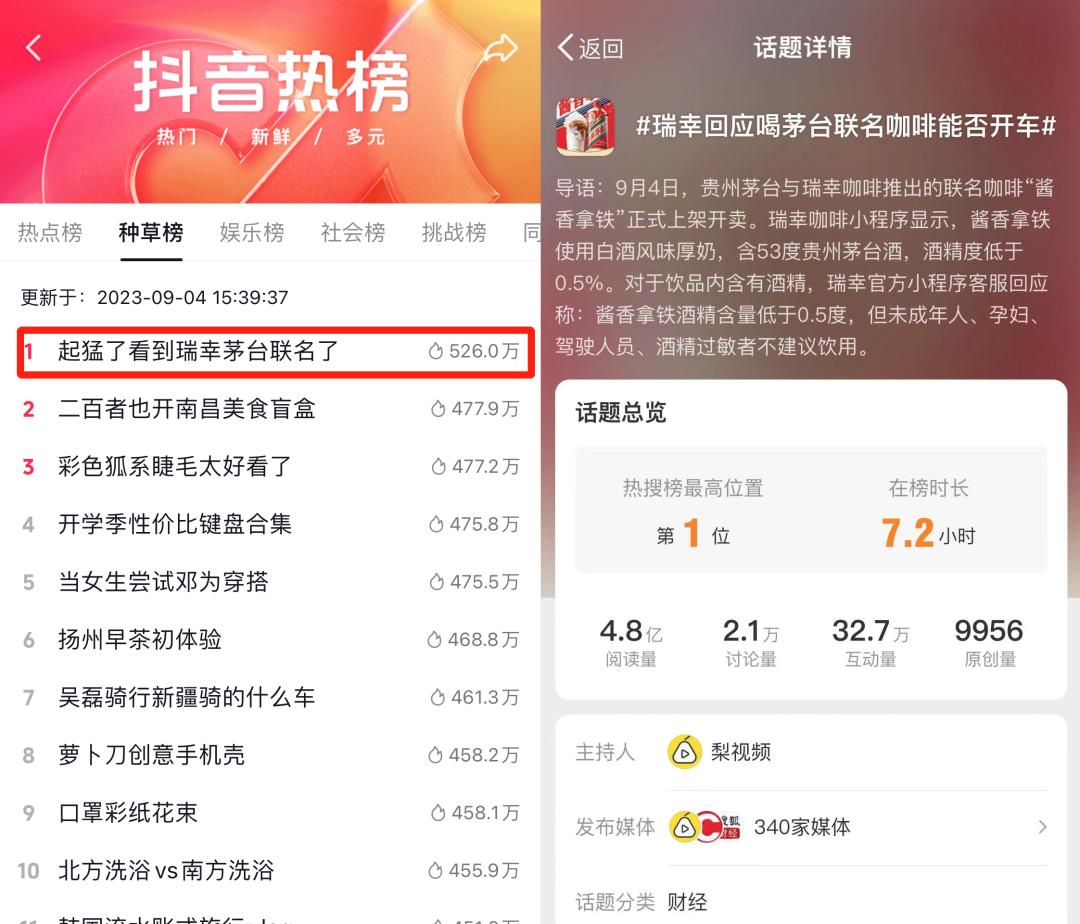 从热度和讨论话题来看,这次联名是瑞幸和茅台的双赢。