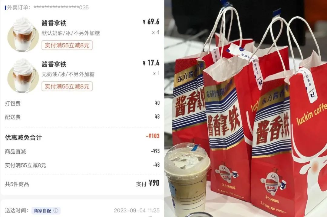 年轻人冲着茅台的噱头下单,同时也不忘cue瑞幸,再加上瑞幸收获了实打实的爆单: