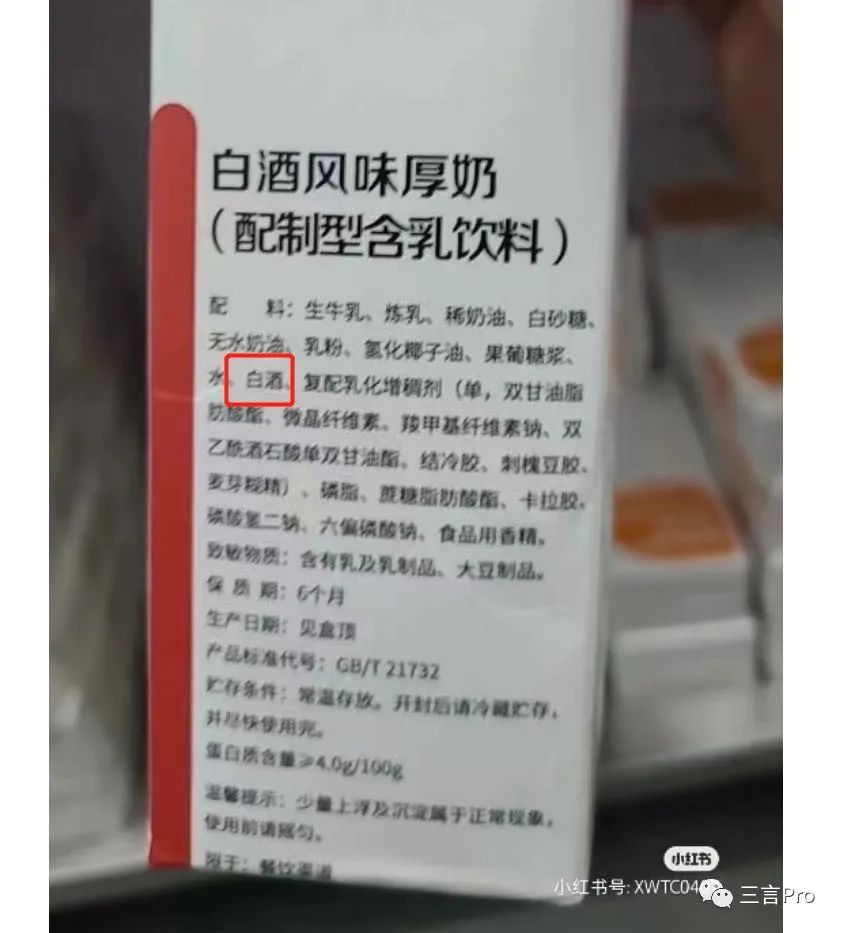 白酒风味厚乳配料表中,除了含有生牛乳、炼乳、奶油、白砂糖、白酒等外,还包含很多添加剂。