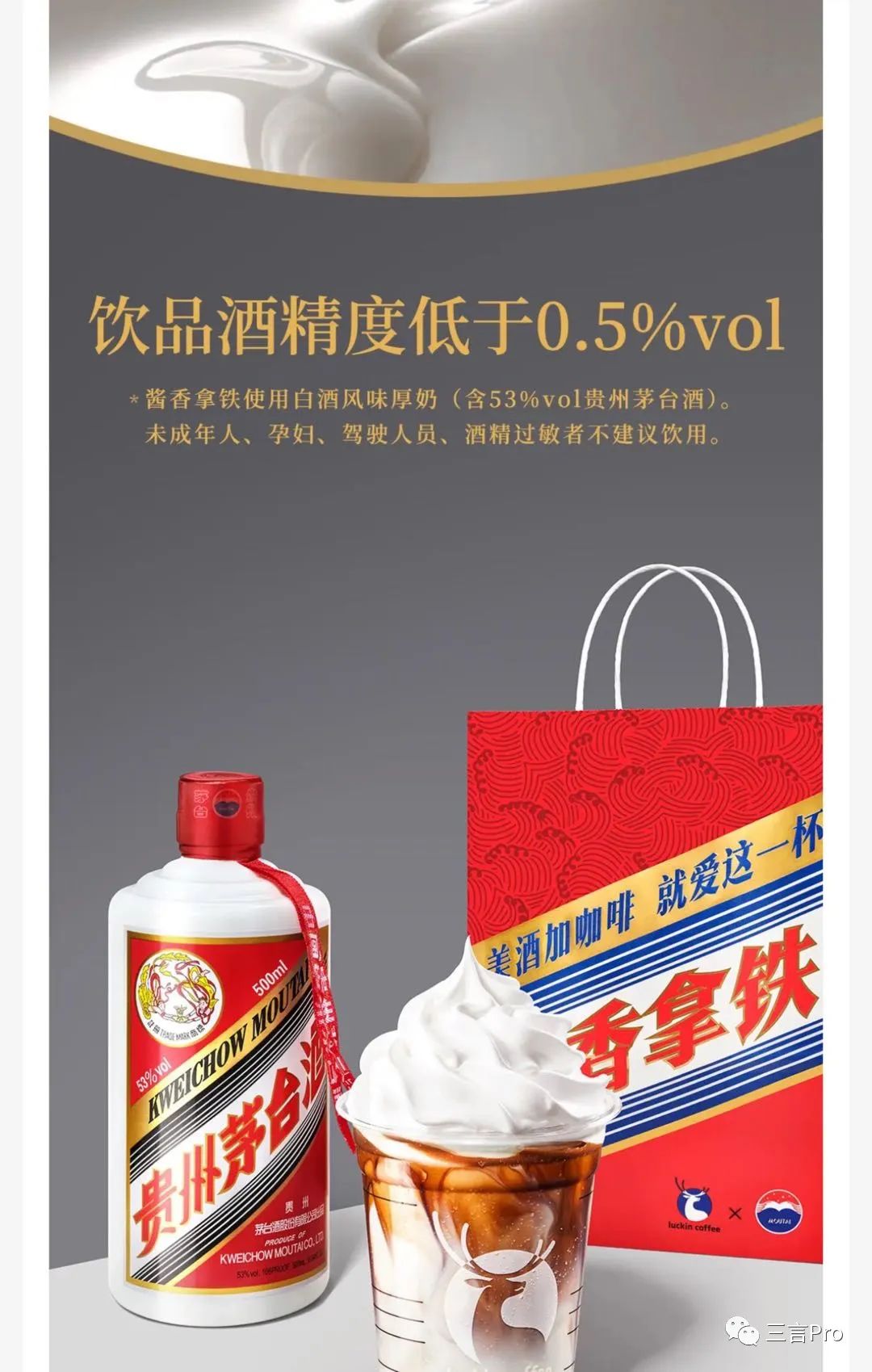 随着瑞幸酱香拿铁销售火爆,随之而来的第一个疑问便是里面真的含有茅台酒吗?