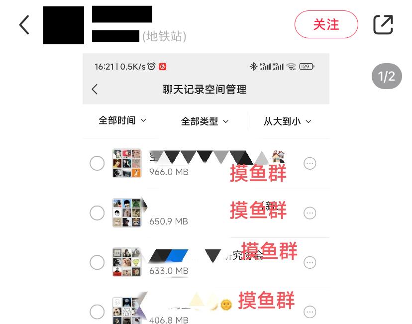 除了这些单独的聊天框,占内存的重灾区当然还有群啦~