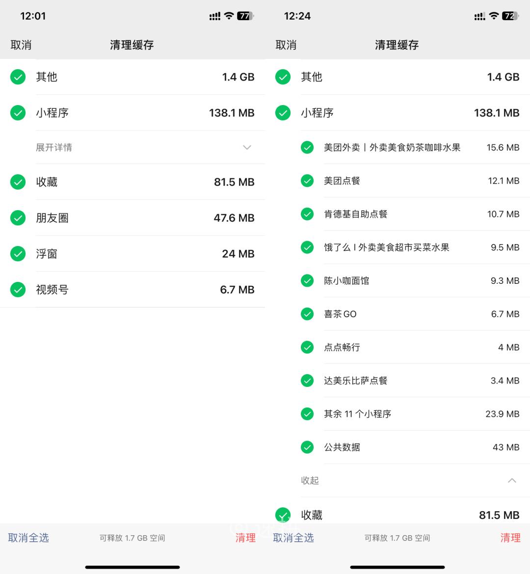 小程序的缓存清理,甚至还能具体到哪一个小程序。。。