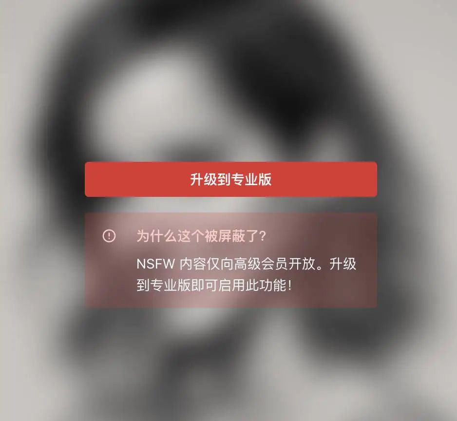 付费解锁界面,NSFW 意为「工作场所不宜」,一般指色情、暴力等内容.