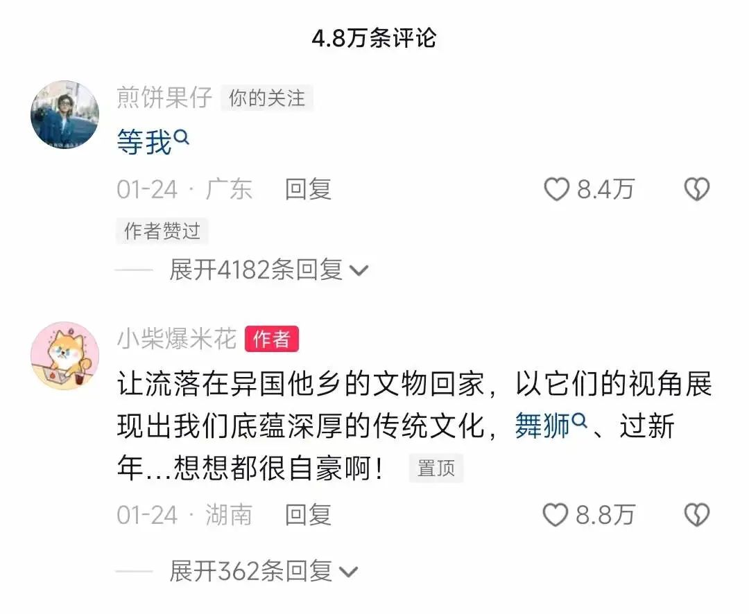 1月23日,“小柴爆米花”转载了这个脑洞。第二天,“煎饼果仔”留言:“等我。”此后,便开启了一场于他而言“盛大的、浪漫的、震撼的大洋彼岸中华文物奔赴之旅”。