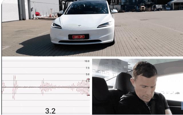 根据测试结果显示,新款Model 3的震动系数大多保持在4~6之间,最高不会超过6 ,而老款Model 3的震动系数在5~7之间,最低没有低于5,也即是说,新款Model 3的缓震性比老款车有着明显的提升。