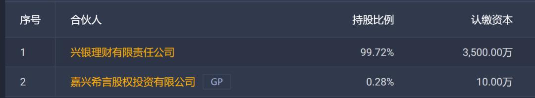 从持股结构来看,兴银理财出资3500万,成为持股99.72%的大股东。