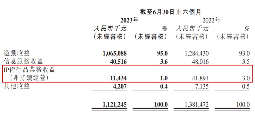 截至2023年6月30日止六个月,创梦天地来自IP衍生品业务(QQfamily)的收入为1143.4万元(去年同期为4189.1万元),这是非持续经营下的收入数据。