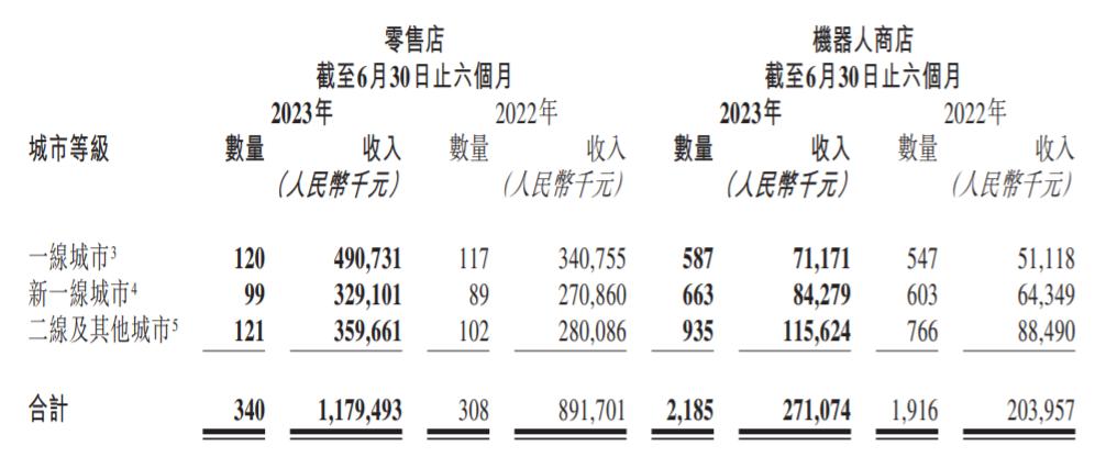 从不同城市等级来看机器人商店的收入,“一线城市”上半年平均单店收入约为12.12万元(去年同期约9.35万元);“新一线城市”上半年平均单店收入12.71万元(去年同期约10.67万元);“二线及其他城市”上半年平均单店收入约为12.27万元(去年同期约11.55万元)。