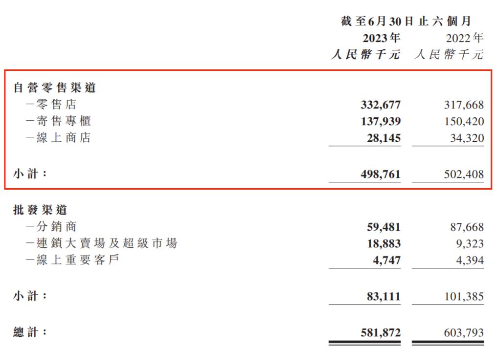据此可估算,2023年上半年,凯知乐零售店的平均单店收入约为193.42万元(去年同期约171.71万元),实现同比增长。寄售专柜的平均单店收入约为33.24万元(去年同期约34.03万元),线上商店的平均单店收入约为100.52万元(去年同期约163.43万元),均有所下滑。
