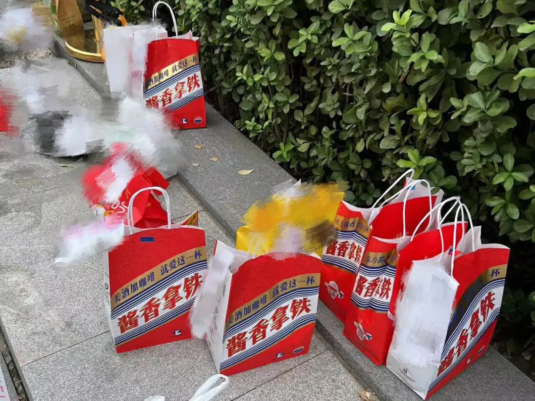 “公司大楼垃圾桶都塞满了瑞幸和茅台联名的红色袋子”“隔壁大楼楼底下的外卖点,全堆着瑞幸和茅台联名的红色袋子”,有消费者惊道。