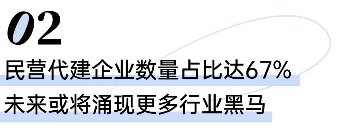 上榜代建企业仍以民企为主,民营房企在投资拿地减少之后,为了充分利用并保持企业的品牌和运营能力,尝试布局代建板块,通过代建业务获取额外收入和利润,同时提升市场占有率。