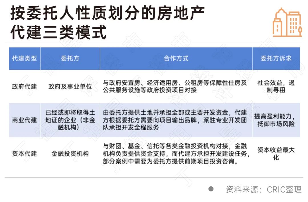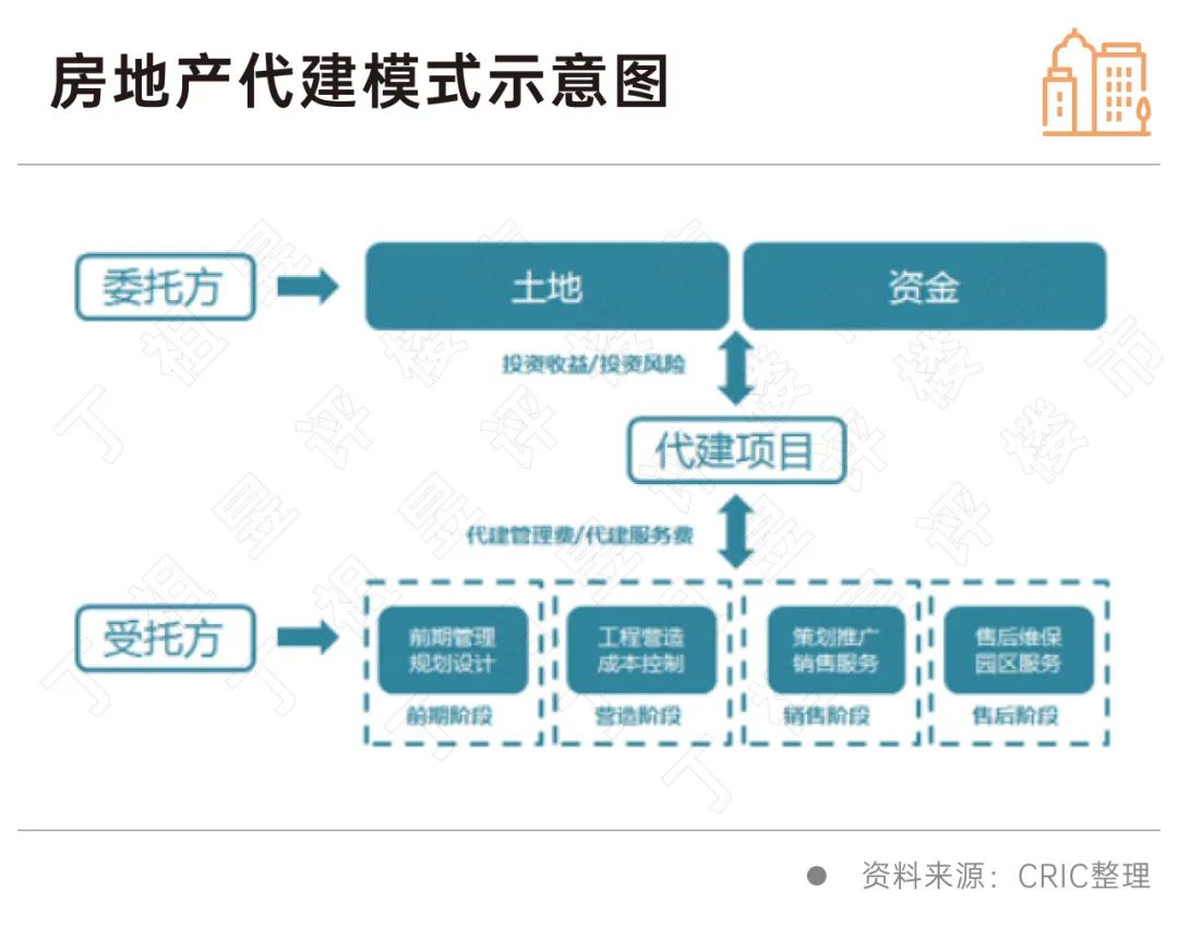 什么是代建?房地产代建主要指由有开发需求的委托方发起诉求,由拥有项目开发建设经验的受托方进行部分或全程参与融资、设计、开发、管理及服务等,最终实现共同盈利的一种商业模式。