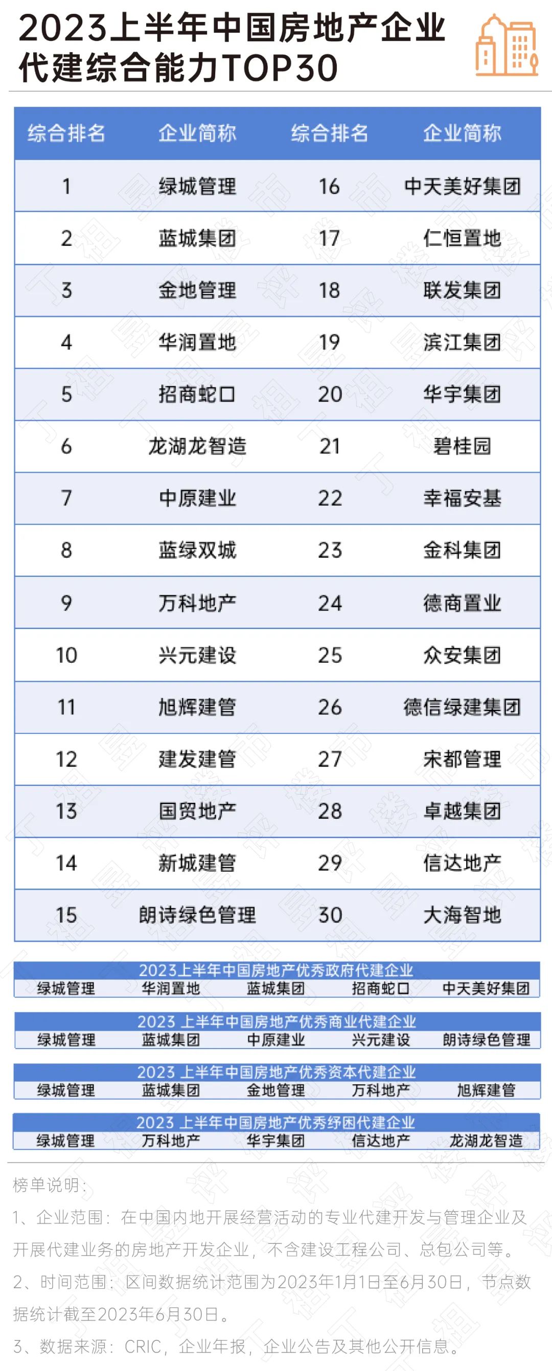TOP30代建企业上半年新增签约面积超7000万,未来将涌现更多黑马