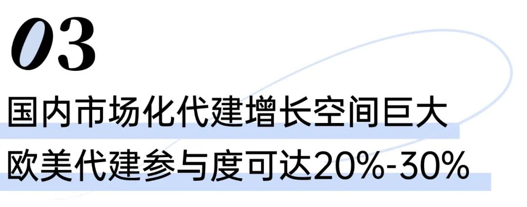 可供参考对比的是,欧美国家的代建参与度在20%-30%,可见当前代建商参与商品房代建程度远低于欧美国家渗透程度,潜在的增长空间巨大。
