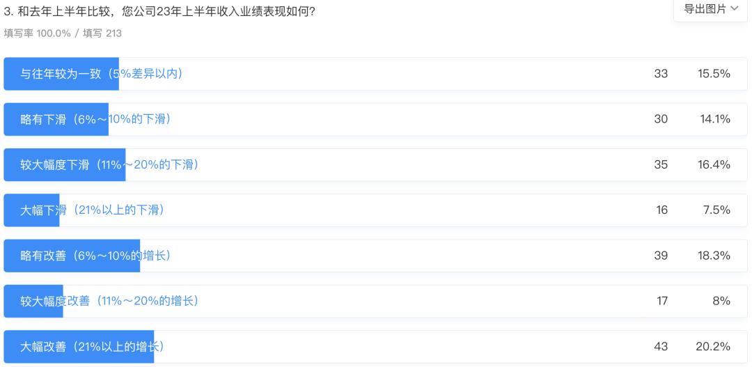 虽然没有权威机构统计过SaaS公司2023年上半年的业绩情况,但是我在ToB老人家的SaaS高管群,做了一个 涵盖200家SaaS公司的匿名调研《SaaS行业2023年上半年业绩调研报告》。