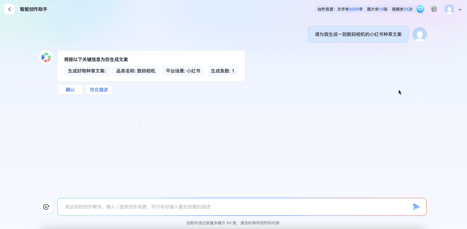 用“一念”创作小红书文案以及宣传视频。图源:作者试用