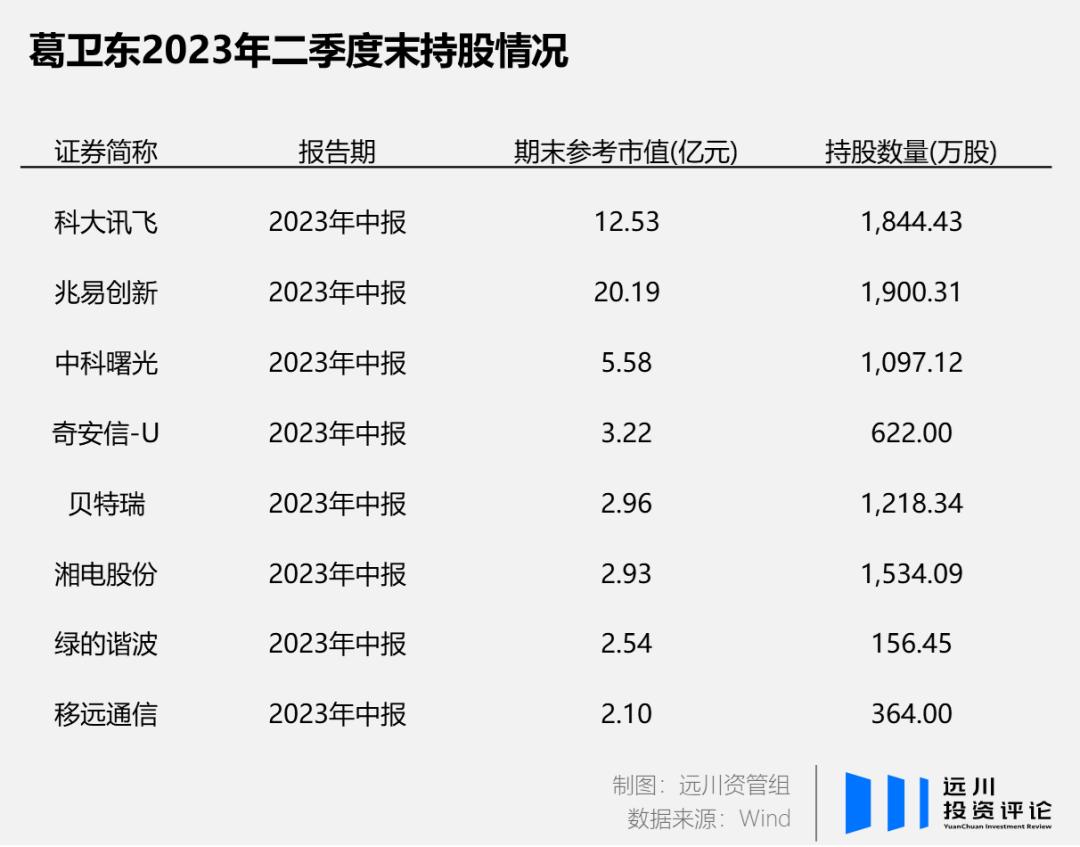 二季度,在年内翻倍的火热行情中,葛卫东卖出了所持科大讯飞股份的15%,以0.8%的持股比例位居科大讯飞第九大股东。