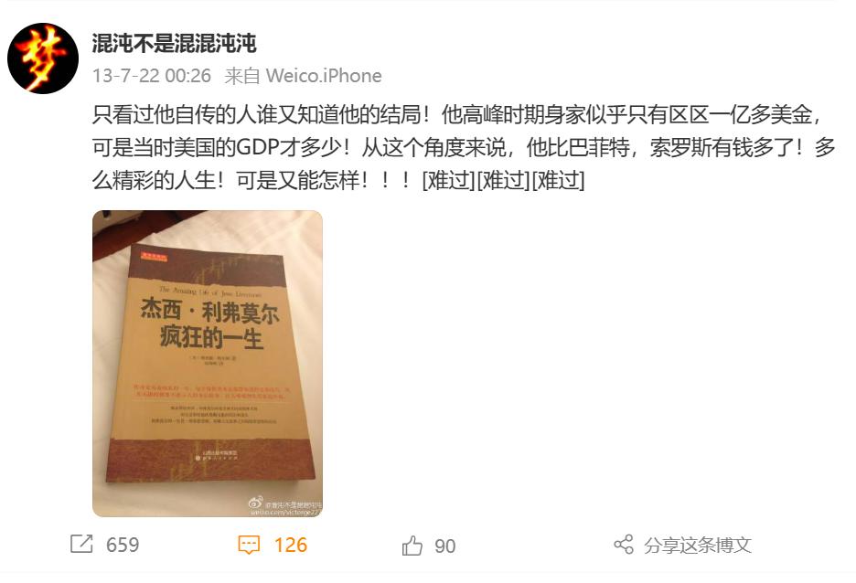 期货市场由于自带高杠杆属性,各路所谓百倍千倍大神如过江之鲫,其中的大多数又会在一次宽幅波动中财富清零。如果沿着这条路走下去,葛卫东也大概率会在一场黑天鹅过后销声匿迹。多年后,葛卫东在一条微博中惋惜利弗莫尔晚年的滑铁卢,而此时的他需要一场进化,来避免重蹈利弗莫尔的覆辙。