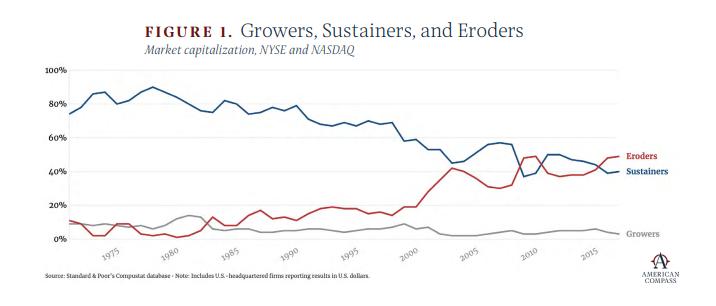 按照资本开支与息税折旧摊销前利润 ( EBITDA ) 之间的相对关系 , 文章将美国的上市公司分为成长型(grower) 、 维持型(sustainer)和侵蚀型(eroder)三种 , 结果如下图 :
