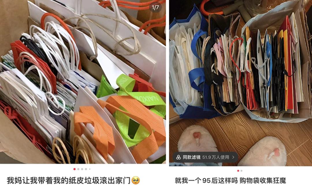 然而,在年轻人们疯狂攒手提袋、变身收纳大师之后,远处猝不及防地传来了妈妈“带着纸皮垃圾滚出家门”的怒吼。