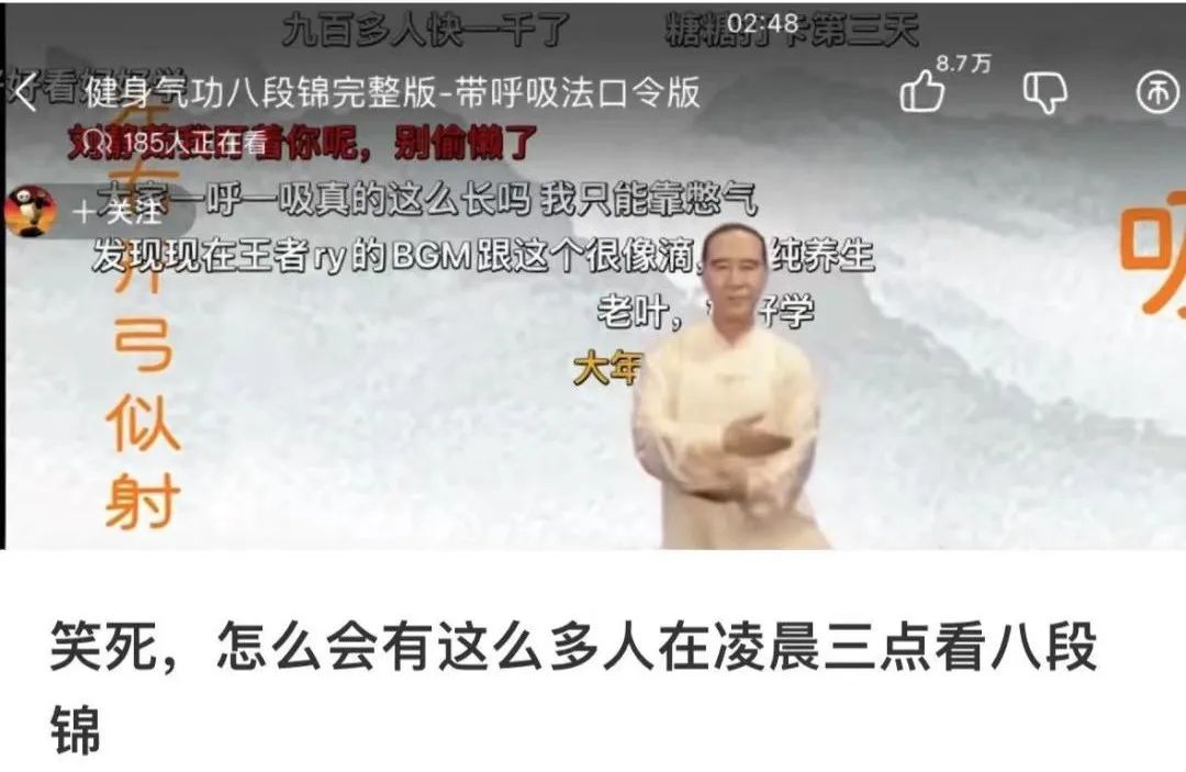 中国本土小破站:凌晨三点,185人实时在线学习八段锦完整版。