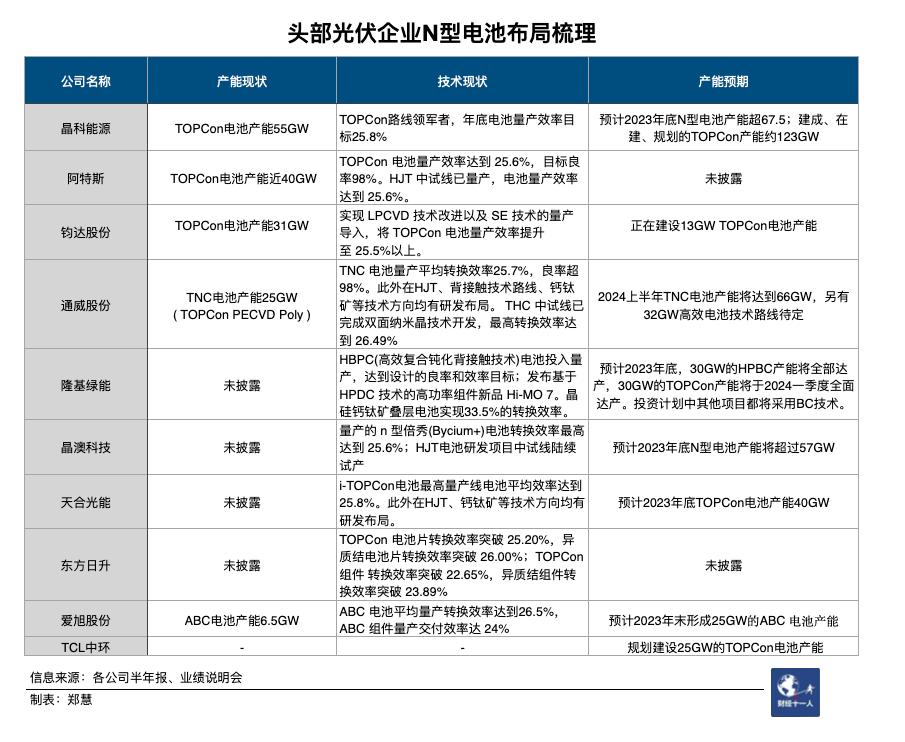 一位业内人士对《财经十一人》表示,今年TOPCon组件出货量预计约120GW,电池片产量约140~150GW,而年底落成的400多GW产能,在明年量产规模上来后,将会对P型电池产生挤压。