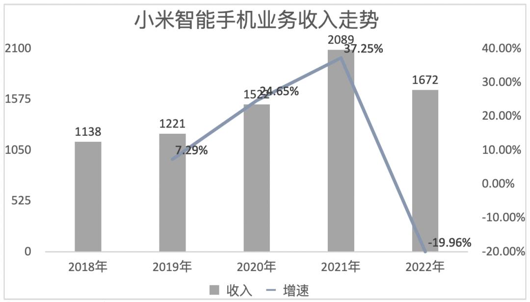 抛开消费电子产品去库存、美联储加息、印度市场受挫等外部因素,小米收入占比过半的智能手机业务表现疲软。此外,小米2021年入局造车后,市场反映也较为平淡。造车新业务处于风口,但动辄百亿元投入对小米的造血能力提出了更高要求。
