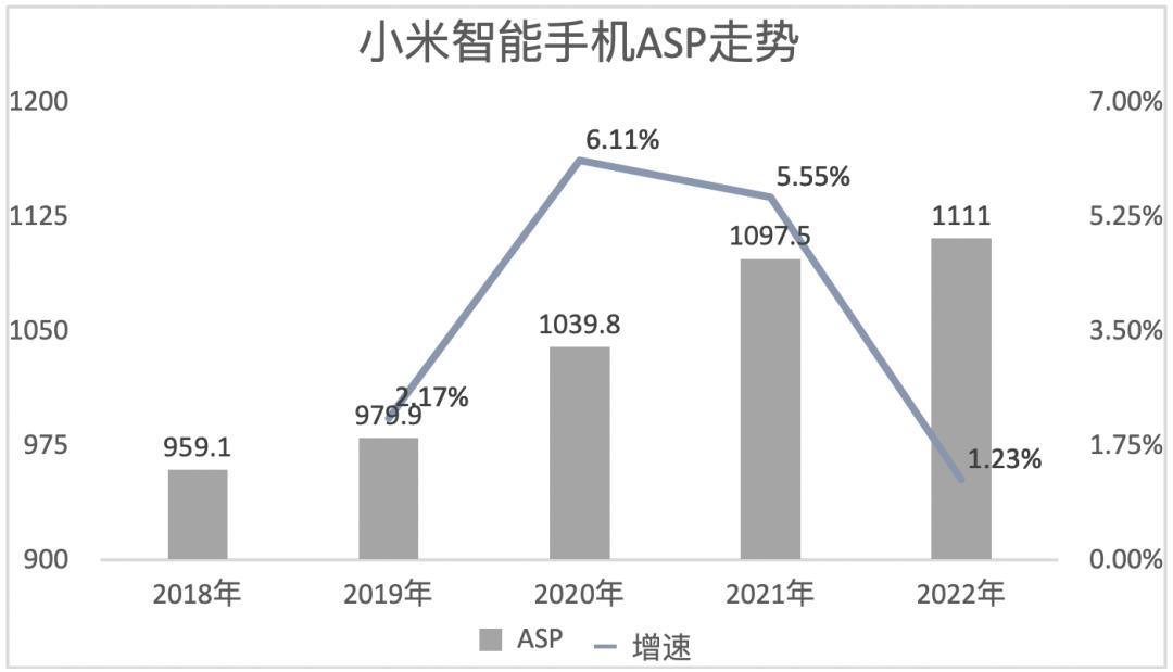 从更长的时间维度来看,小米的高端化战略的确取得了一定成果。2018年至2022年,小米ASP稳步提升,尤其在2020年和2021年增速明显。