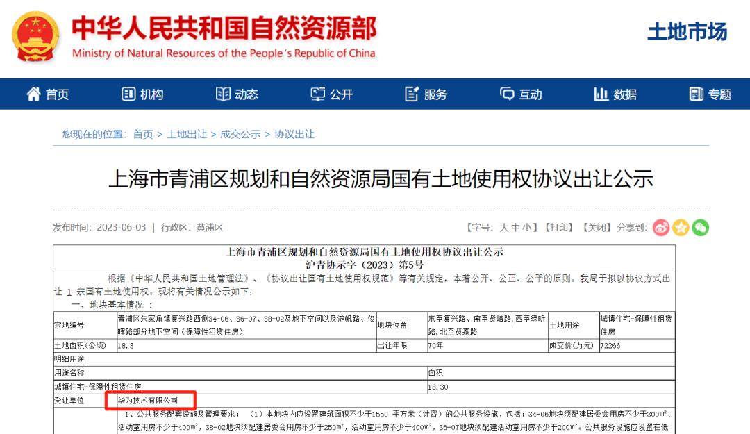 今年6月初,青浦就将一幅朱家角地块,以保租房的形式定向出让给了华为。