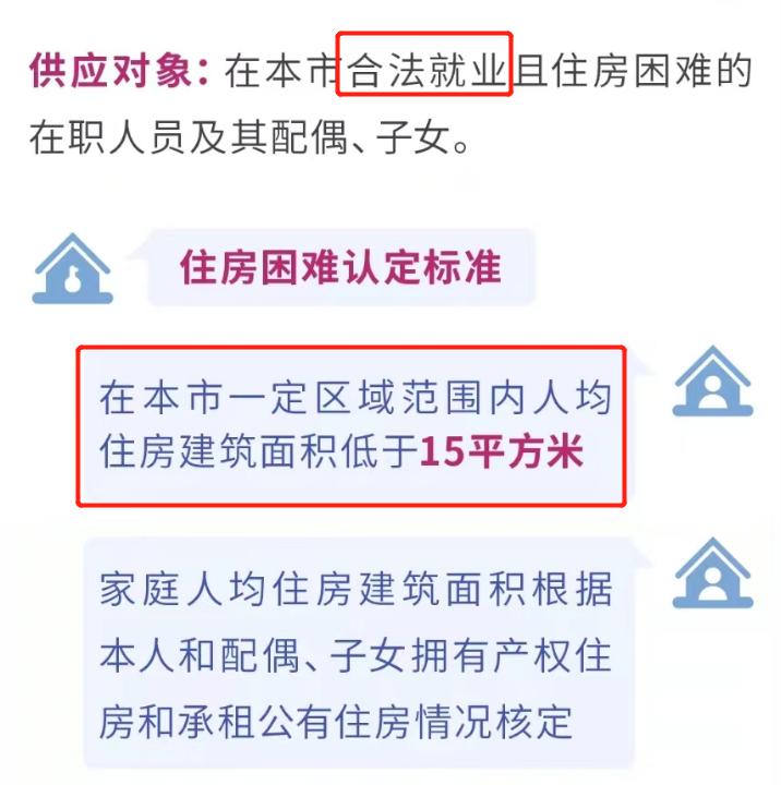 一是所在区域内名下无房(或折算人均住房面积小于15㎡,各区标准不同,以随申办公告为准),二就是有一份正当工作。