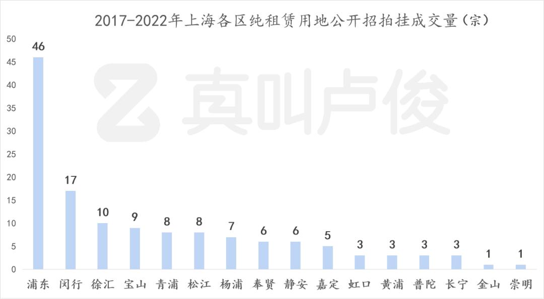 按区域分布来看,毫无疑问,浦东是纯租赁用地储备最多的一个区域。