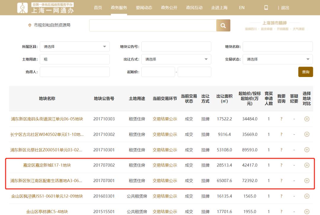 2017年,上海地产集团就在2个月内拍了9宗租赁用地,全部以零溢价成交,保证了未来的租金回报率。