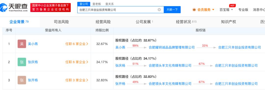 值得一提的是,三只羊的股东列表里还出现了杜刚、吴小燕等大佬的名字——业界和诸多媒体将其解读为资本注入。据凤凰网报道,伴随资本引入其合作团队也有更换。三只羊官网信息显示,MCN遥望网络及交个朋友的供应链公司——杭州尽微供应链信息服务有限公司旗下尽可微好物也为三只羊提供招商服务。