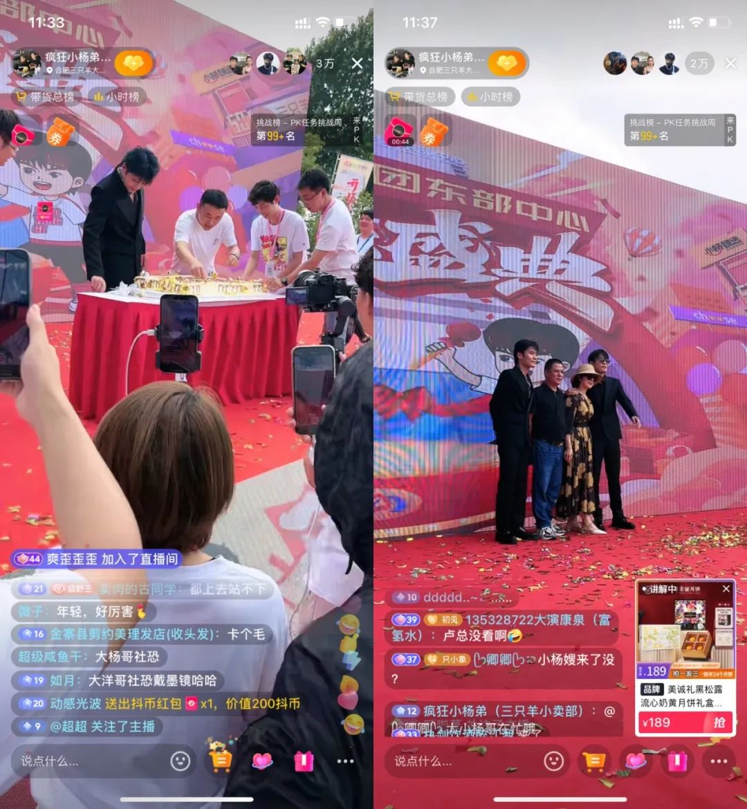 至6日午时大小杨哥剪完彩切蛋糕时,某个切片账号的直播间里已有3万人同时在线。