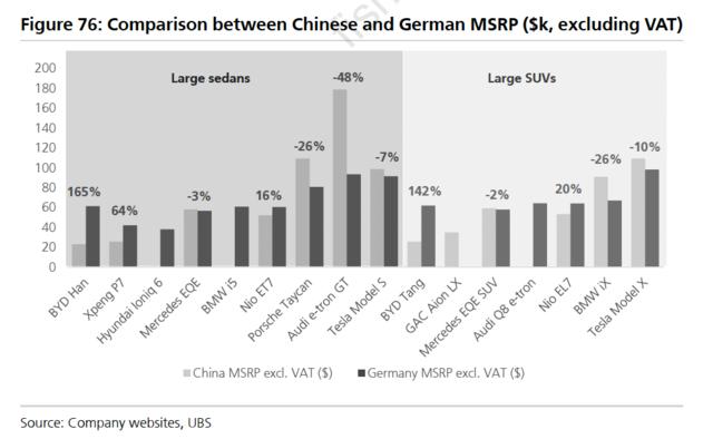 瑞银称,欧洲本土汽车制造商如果不降价,将被挤出市场。与同类产品相比,10%-15%的降价幅度是赢得客户的必要条件: