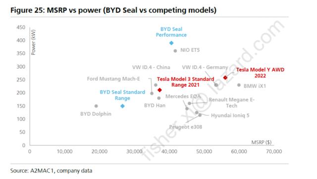 与比亚迪直接竞争的车型包括斯Model 3和Y以及大众ID.3和ID.4。