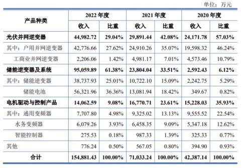 三晶股份自2011年开始将业务集中在分布式光伏发电领域。主要从事光伏并网逆变器、储能逆变器及系统、电机驱动与控制产品的研发、设计、生产和销售。回顾过去三年,光伏并网逆变器收入贡献比逐年下降,从57.03%降至29.04%。储能逆变器及系统的营收比重则大幅提升,从6.12%提升至61.38%,超过光伏类产品成为主要收入来源。