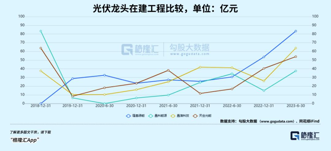 增幅是体现在中报数据上的,在“在建工程”这一项,隆基在建设规模上领先于其他厂商,增幅上也基本和其他厂商保持同步。