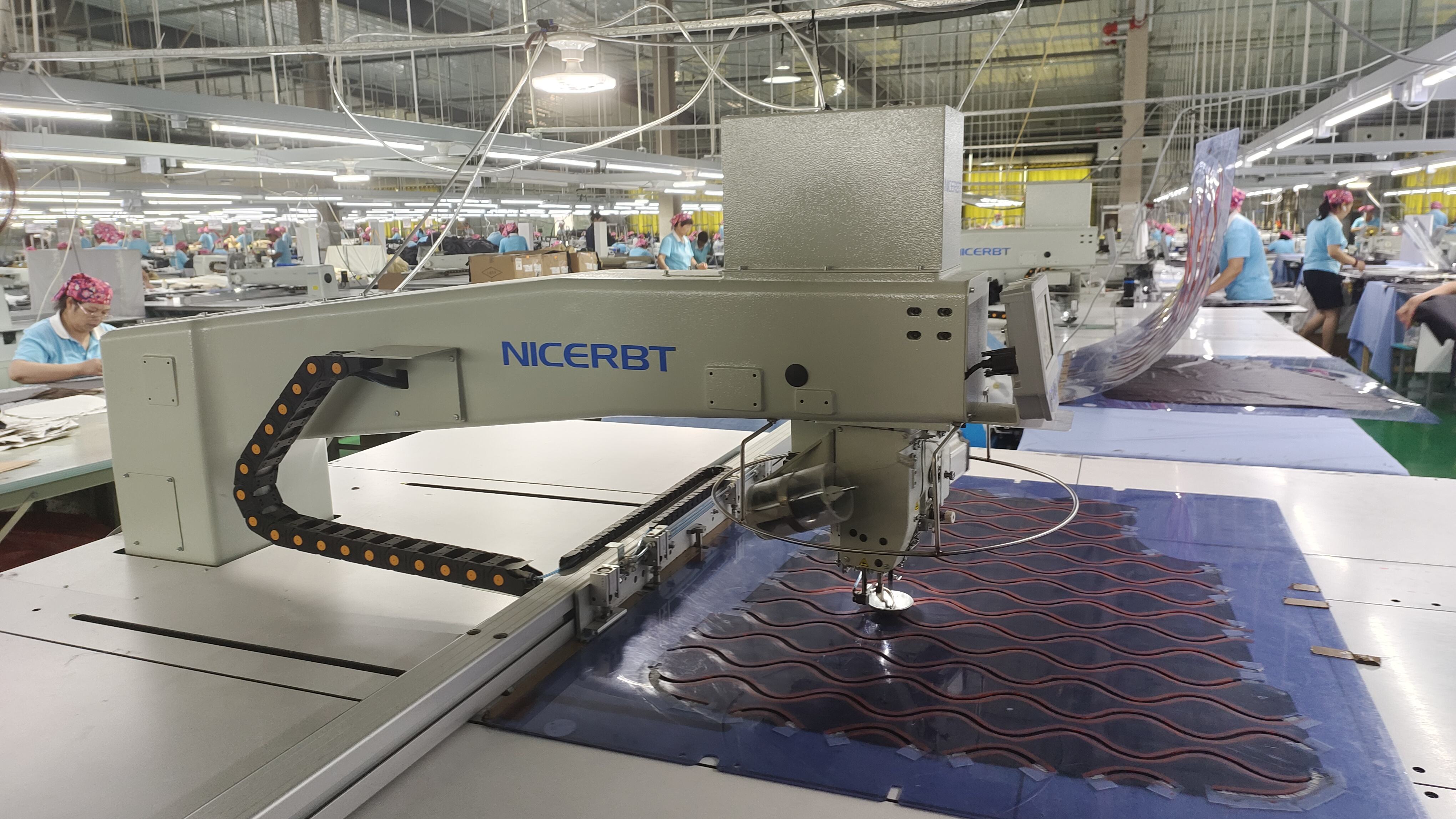 缝纫环节占据服装制造流程时间和成本的八成,不同部位的缝纫工序都有很大差别。倘若依赖人工,对工人的技术掌握能力要求较高。作为功能性服装的羽绒服,相较于常服生产,增加了内胆裁剪、充绒和锁绒等环节,生产流程更长、难度更大。