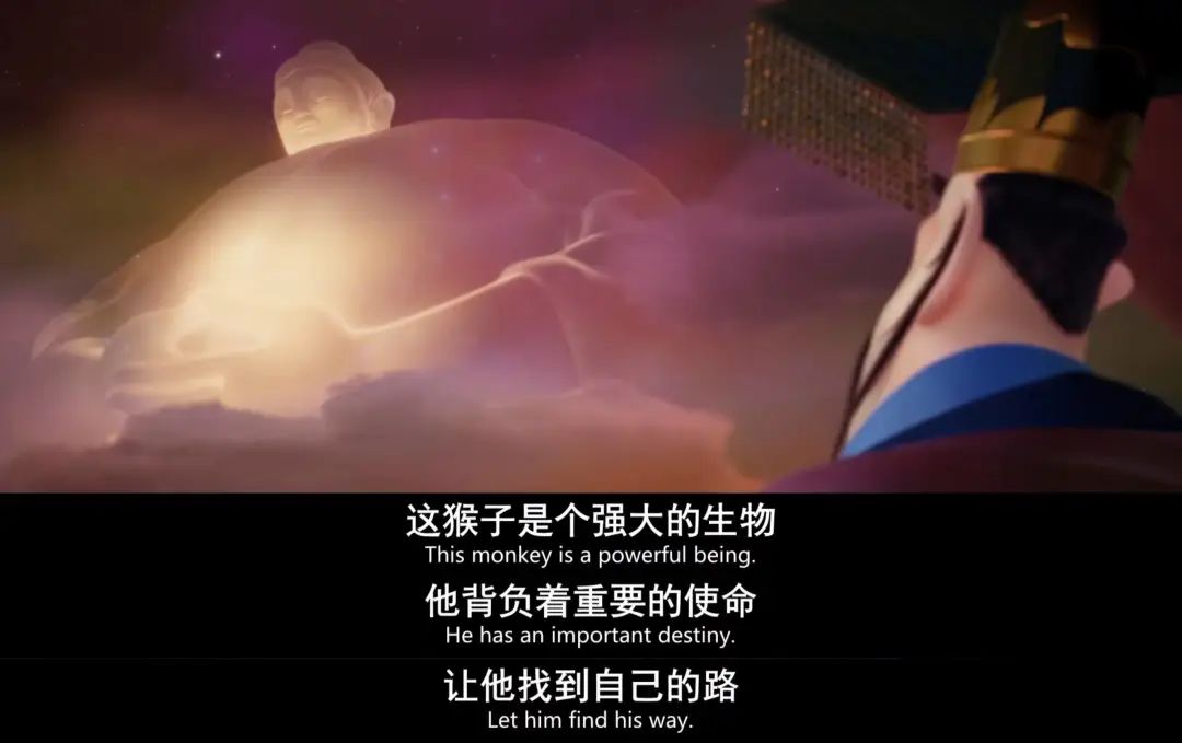 玉帝想要收拾小猴子的时候,突然出现的佛祖不仅宣扬「天命论」,还变成了玉皇大帝的上级。