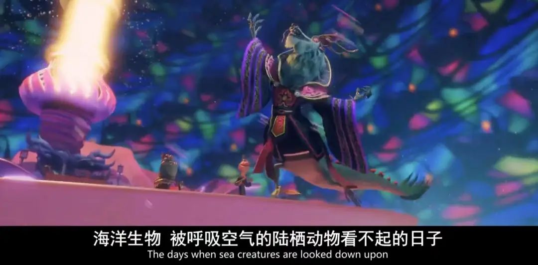 在某些创意方面《美猴王》是充满巧思的,比如小猴子的镭射眼、金箍棒不仅发声还自带音波形、龙王通过全息投影向玉帝投诉美猴王等等,巧妙融合了东方神仙体系和西方科技元素。