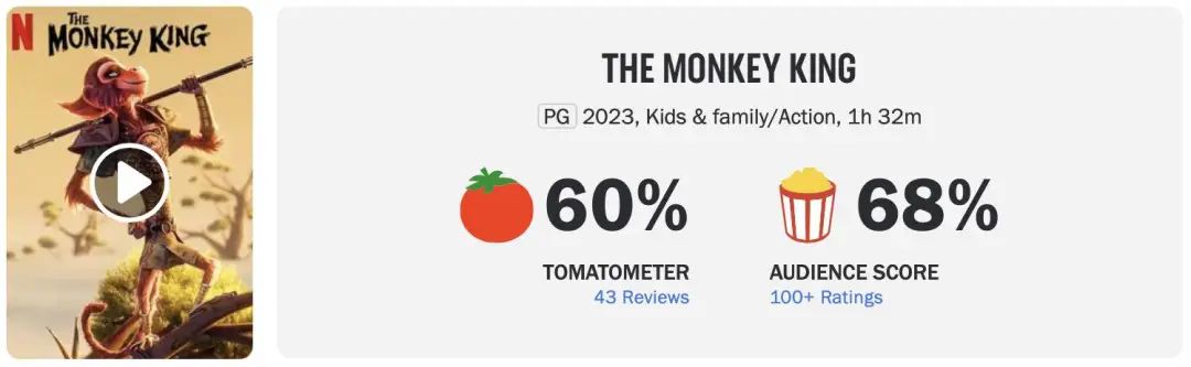 截至目前,《美猴王》豆瓣评分 5.5 分,烂番茄新鲜度 60%,IMDB 均分 5.8,总体看并不是一个乐观的成绩。